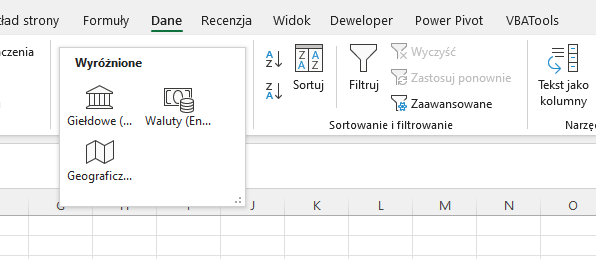 Po zainstalowaniu office365 w excelu nie posiadam typów danych - akcje oraz geograficzne.