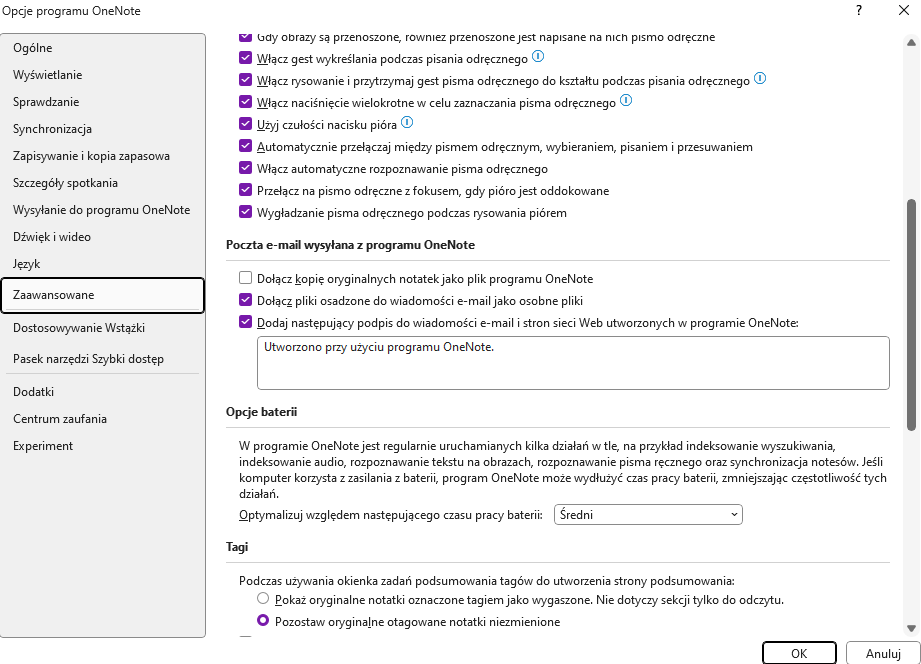 Zgodnie z Twoim pytaniem sugeruję, abyś najpierw sprawdził ustawienia wysyłania wiadomości e-mail w OneNote Advanced, aby potwierdzić opcje