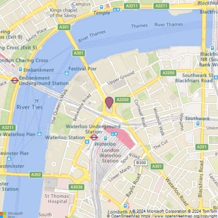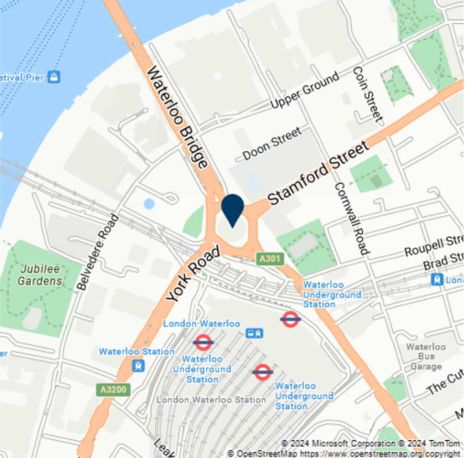 https://atlas.microsoft.com/map/static?api-version=2024-04-01&tilesetId=microsoft.base.road&zoom=15¢er=-0.113629,51.504810&height=500&Width=500&pins=default||-0.113629 51.504810||&subscription-key={Your-Azure-Maps-Subscription-key}