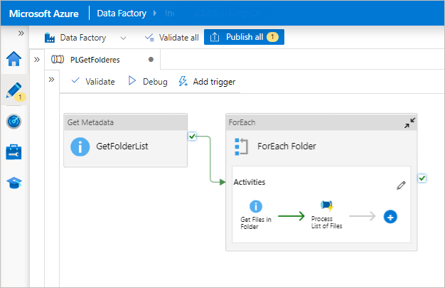 Przykładem tego wzorca byłoby, gdyby istniał system plików z listą folderów, a każdy folder zawiera wiele plików, które chcesz przetworzyć. Ten wzorzec można wykonać, ogólnie, wykonując następujące czynności.