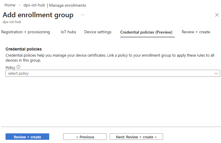 az iot dps enrollment-group create --dps-name <DPS_NAME> --resource-group <RESOURCE_GROUP> --enrollment-id <ENROLLMENT_ID> --credential-policy <POLICY_NAME>
