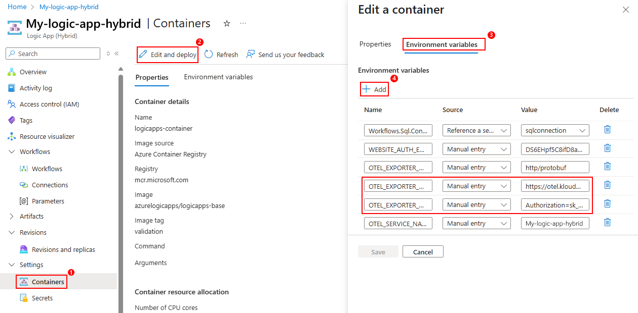 Aby skonfigurować funkcję OpenTelemetry w witrynie Azure Portal, wykonaj kroki oparte na opcji hostingu dla standardowego przepływu pracy logiki.