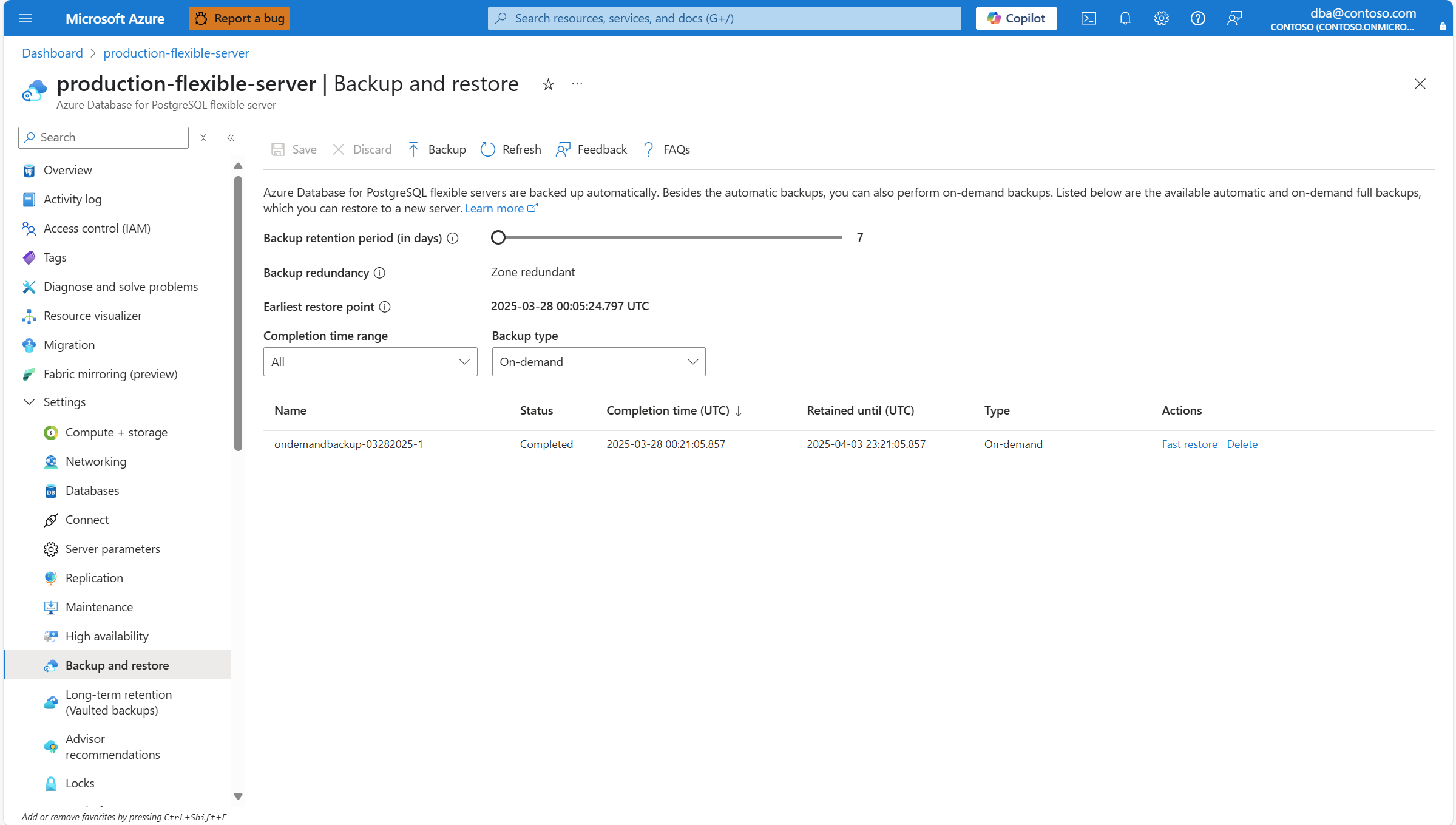 Ten artykuł zawiera instrukcje krok po kroku dotyczące usuwania kopii zapasowych na żądanie wystąpienia elastycznego serwera usługi Azure Database for PostgreSQL.
