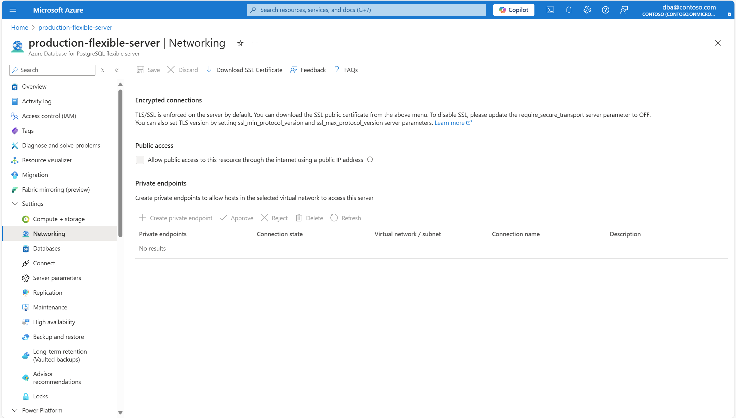 If you enable public access, connectivity to the server is also possible via private endpoints.
