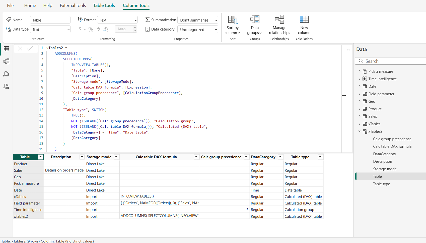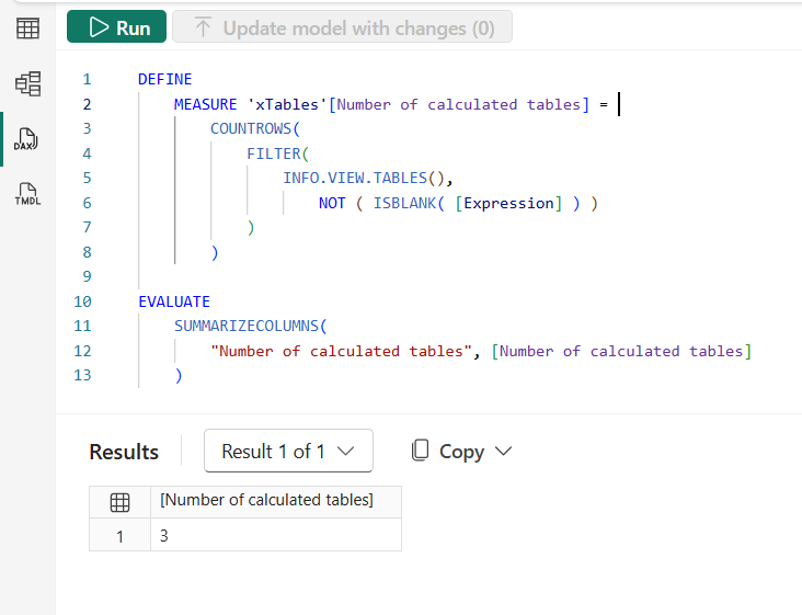 MEASURE 'xTables'[Number of calculated tables] =