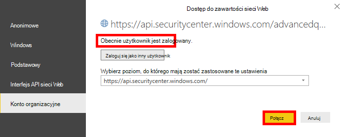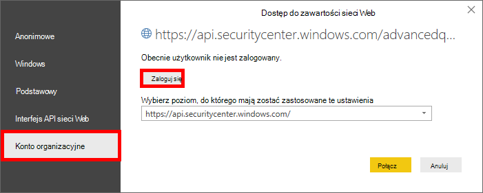 Łączenie usługi Power BI z zaawansowanym interfejsem API wyszukiwania zagrożeń