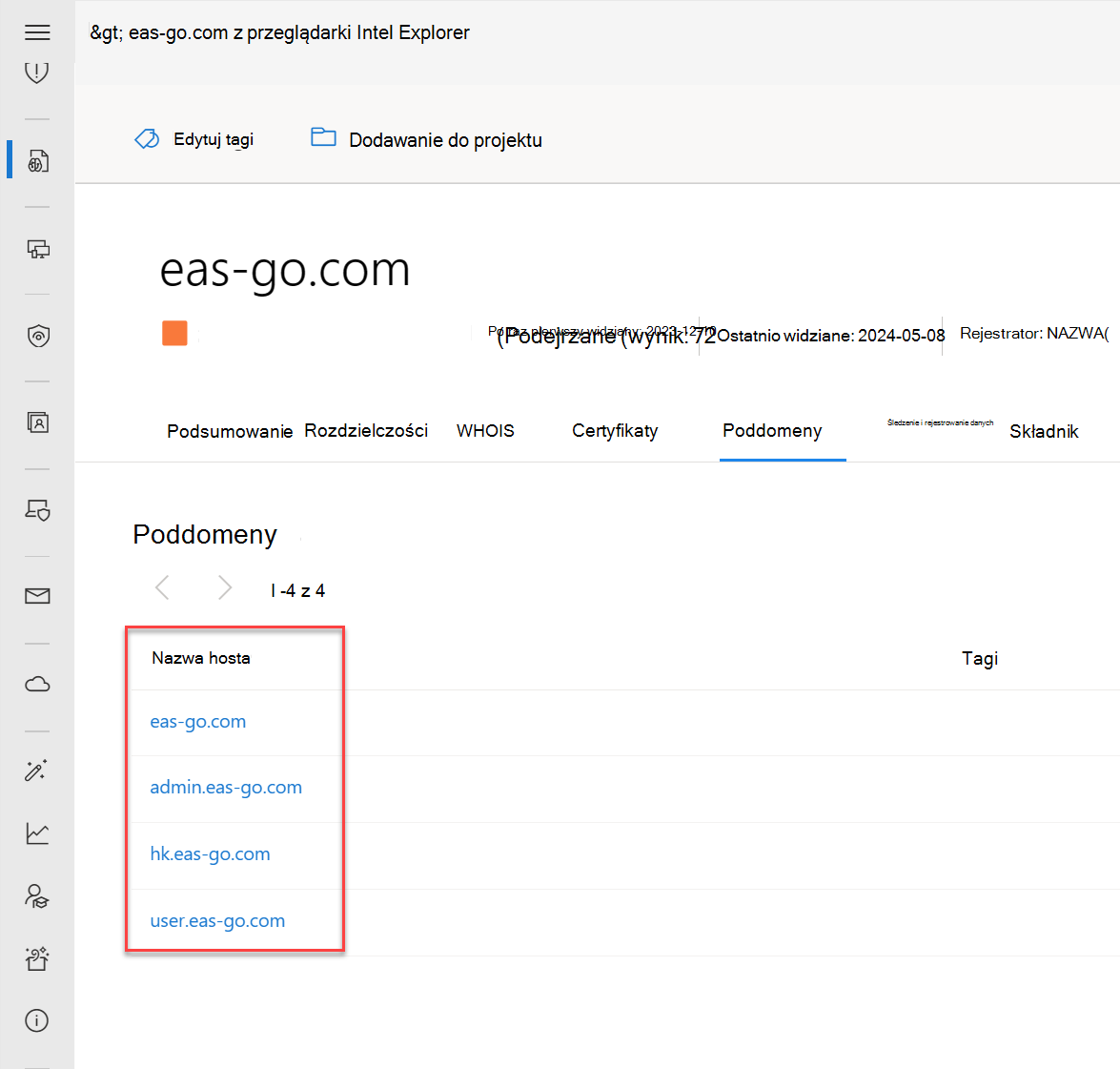 - Proaktywne identyfikowanie infrastruktury skojarzonej z grupami aktorów ukierunkowanymi na organizację