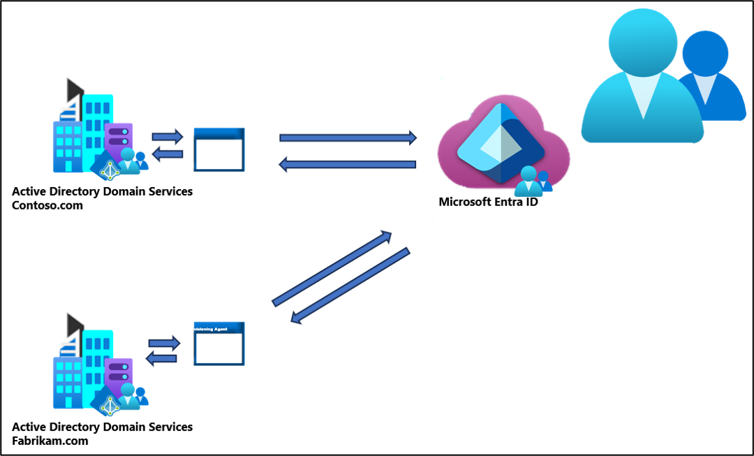Wiele lasów AD to powszechna topologia z jedną lub wieloma domenami i pojedynczym dzierżawcą Microsoft Entra.