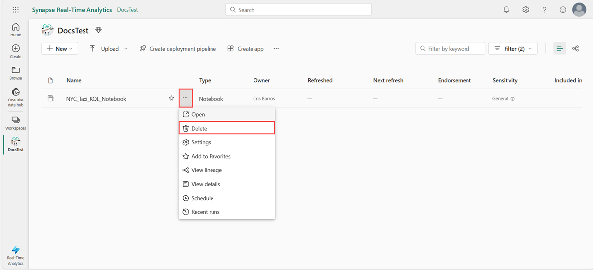 Wybierz notes NYC Taxi KQL, który został pobrany w kroku 3.