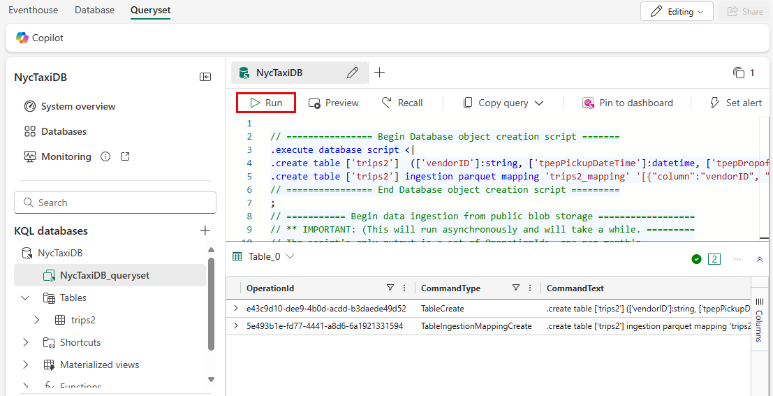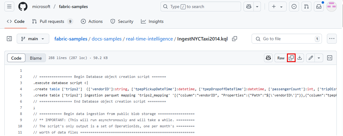 Skopiuj skrypt KQL z repozytorium przykładów usługi Fabric na GitHub