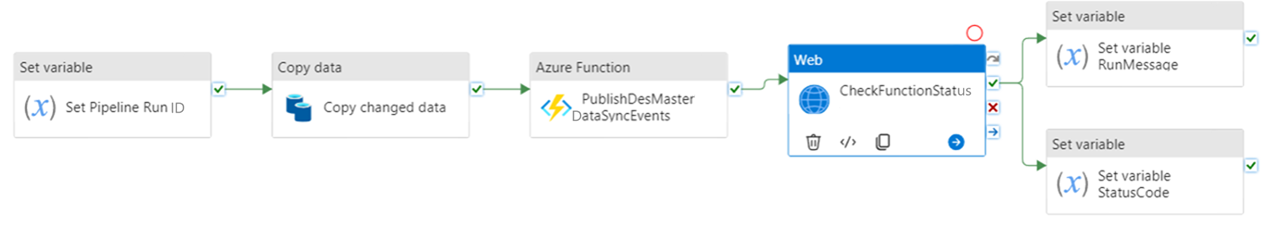 The following diagram shows an example of a Data Factory flow that invokes durable functions as part of a chain of tasks.