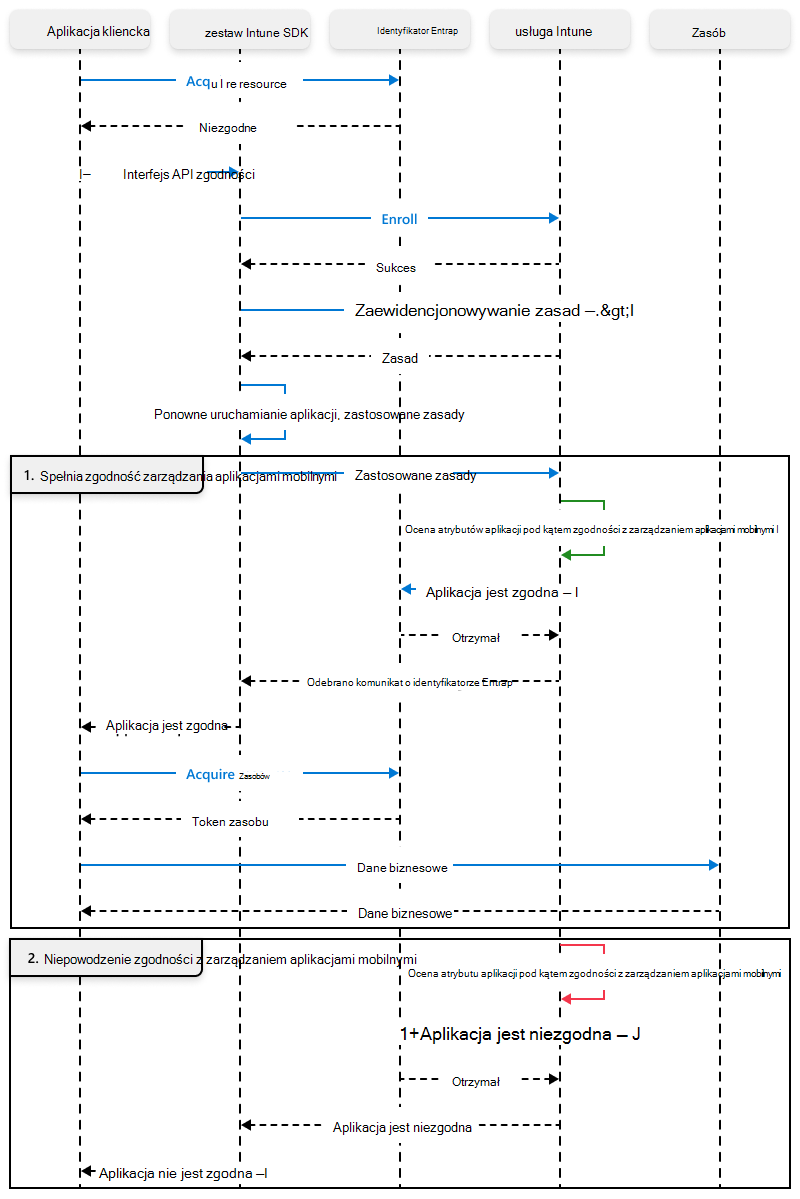 Przepływ procesu zgodności zarządzania aplikacjami mobilnymi