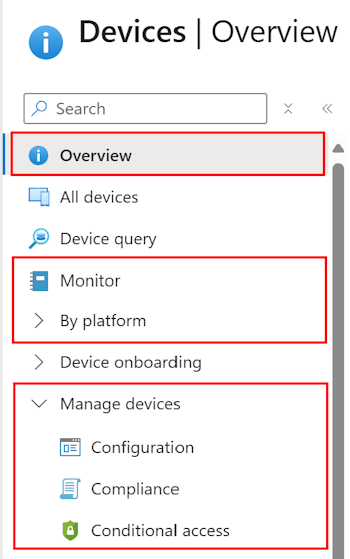 W centrum administracyjnym Intune wybierz pozycję Urządzenia. Masz następujące możliwości: