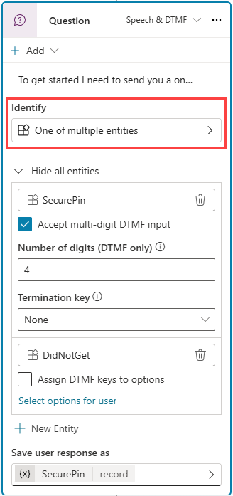 Podczas konfigurowania zawieszenia i wznowienia na poziomie tematycznym, dodanie obsługi wielu warunków w węźle Pytanie zapewnia dodatkową elastyczność w nawigowaniu po możliwych przepływach konwersacji. Ta funkcja zapewnia bardziej naturalny przepływ konwersacyjny.