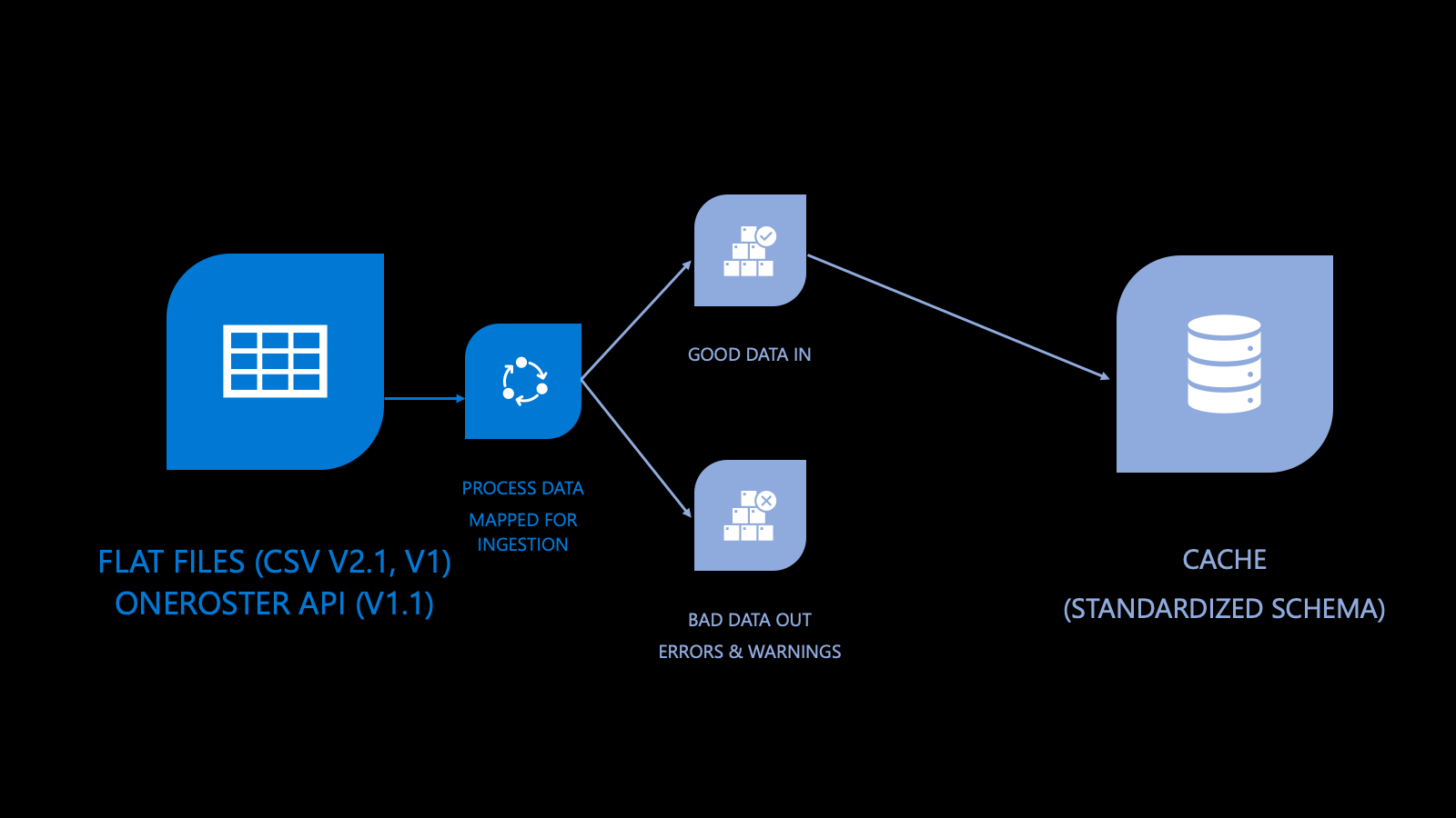 Next, your SDS performs advanced validation to determine the health of your data. Validation focuses on identifying errors and/or warnings. Validation follows the concept of bringing in good data and keeping out bad data.