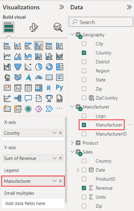 Przeciągnij i upuść kolumnę Producent do sekcji Legenda okienka Wizualizacje .