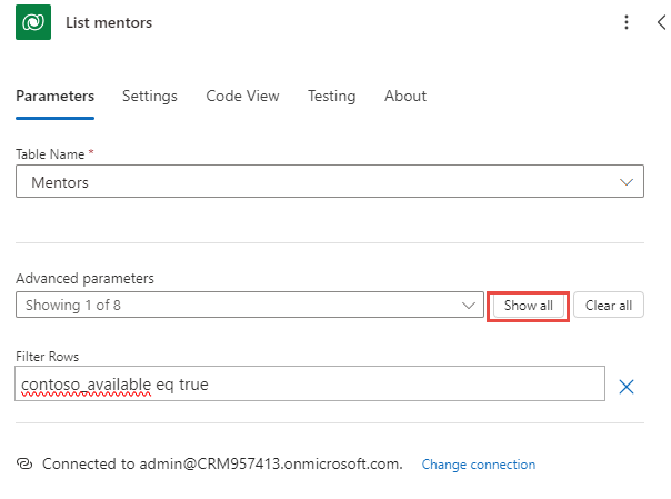 Select Requested By Email of the Get mentoring request step from the Get mentoring request action. Usually, this request goes to the person who manages mentoring requests, but to make testing easier, you use the requester's email for this exercise.