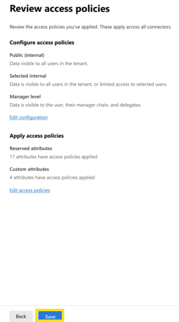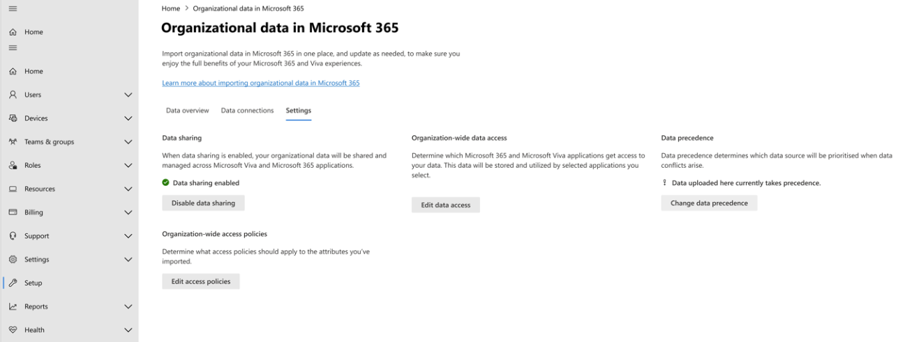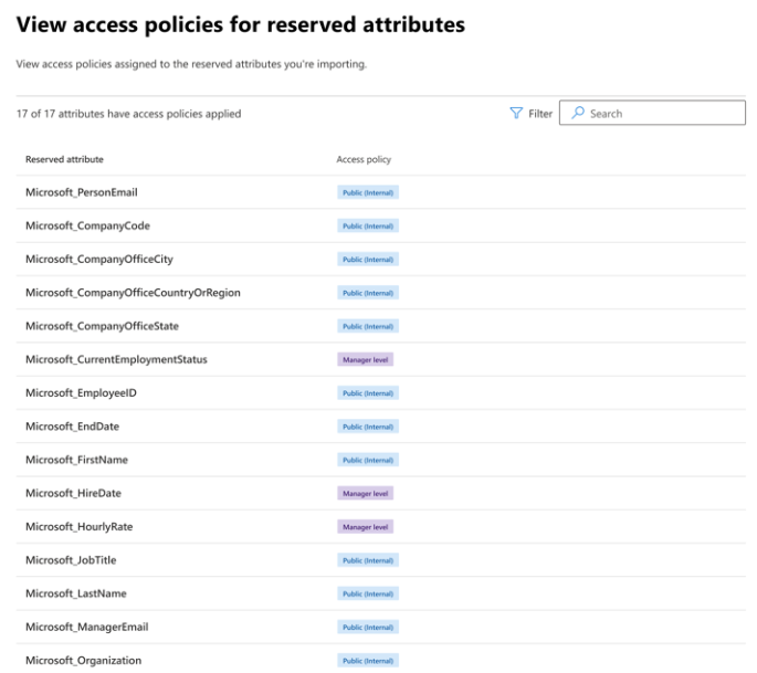 When you import organizational data into Microsoft 365, you can review the access policies for the attributes shared with downstream apps. This gives you greater control in managing how your imported data is used across Microsoft 365 and Viva apps and services.