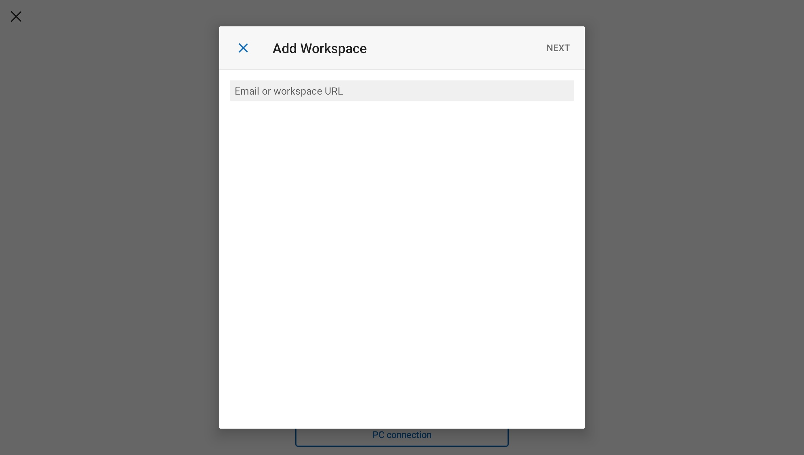 Naciśnij Obszar roboczy. W wyświetlonym polu wprowadź adres URL obszaru roboczego podany przez administratora. Adres URL jest sprawdzany, aby upewnić się, że jest prawidłowy. Po zakończeniu sprawdzania naciśnij przycisk Dalej.