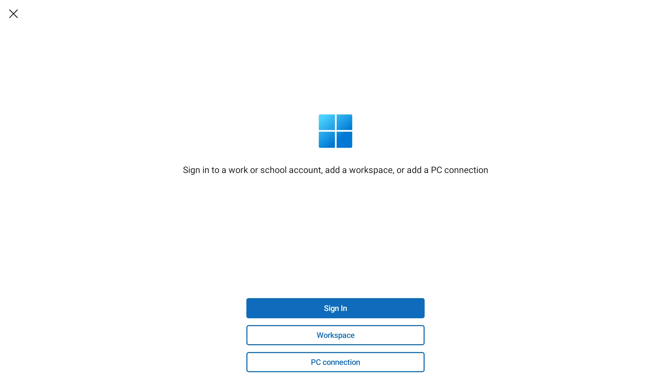 Twoje konto użytkownika dla usługi Azure Virtual Desktop i masz przypisane urządzenia lub aplikacje przez administratora. Możesz również zalogować się przy użyciu wielu kont i łatwo przełączać się między nimi. Nie można zalogować się do Windows App przy użyciu osobistego konta Microsoft (MSA).