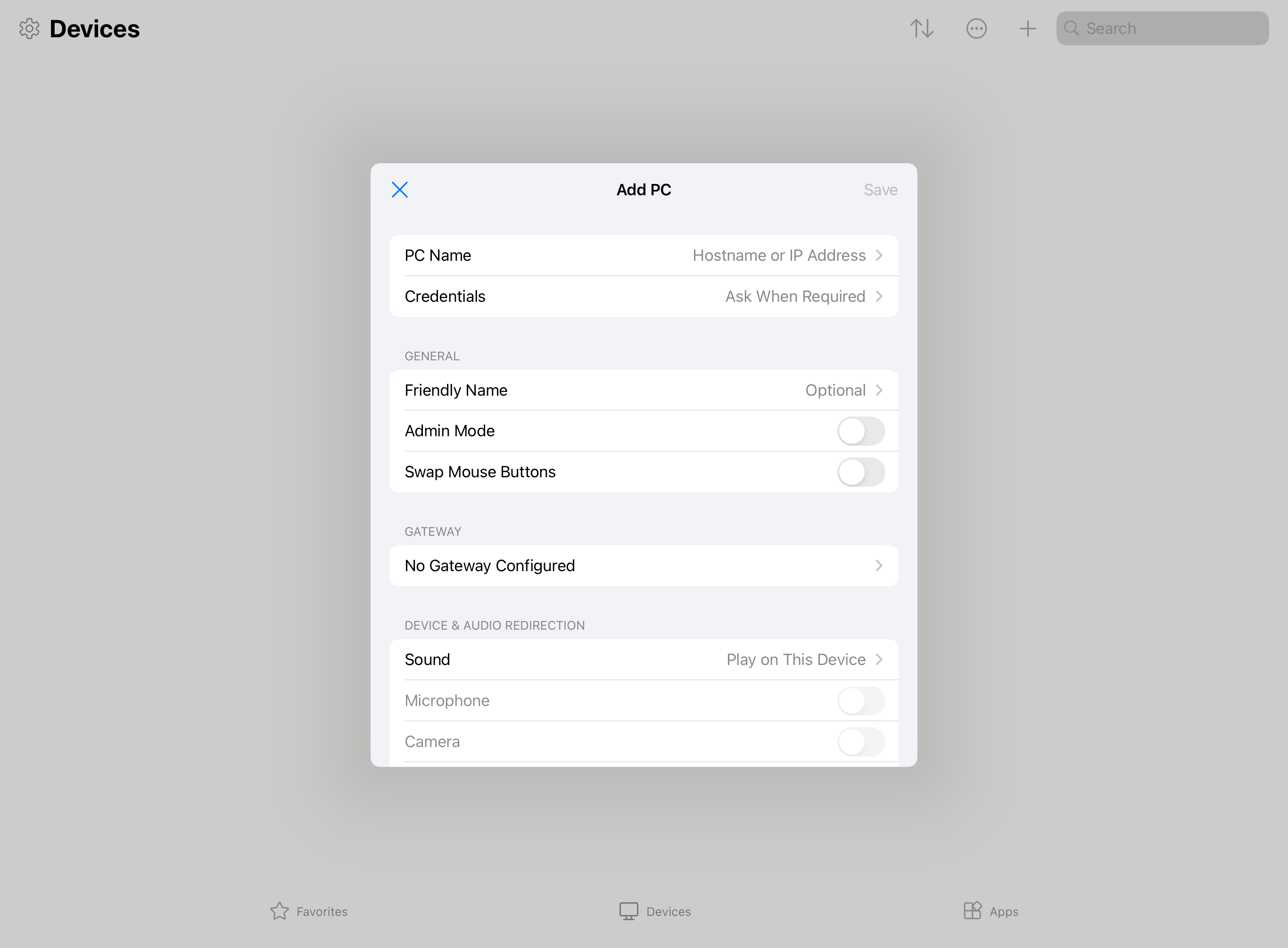 Naciśnij pozycję Zapisz. Komputer zdalny zostanie dodany do karty Urządzenia .