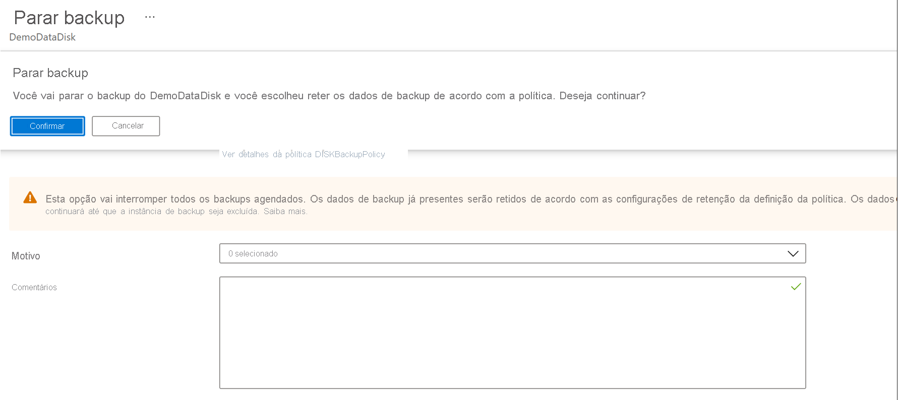 Você também pode selecionar o motivo para interromper backups na lista suspensa.