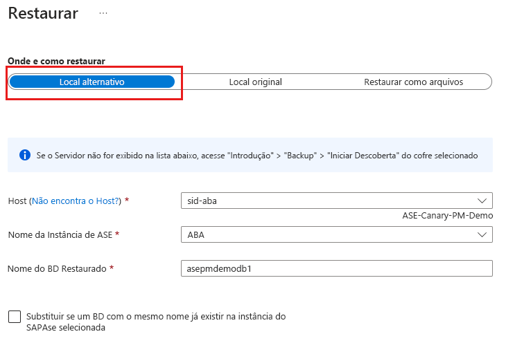 Restaurar o banco de dados SAP ASE para um local alternativo