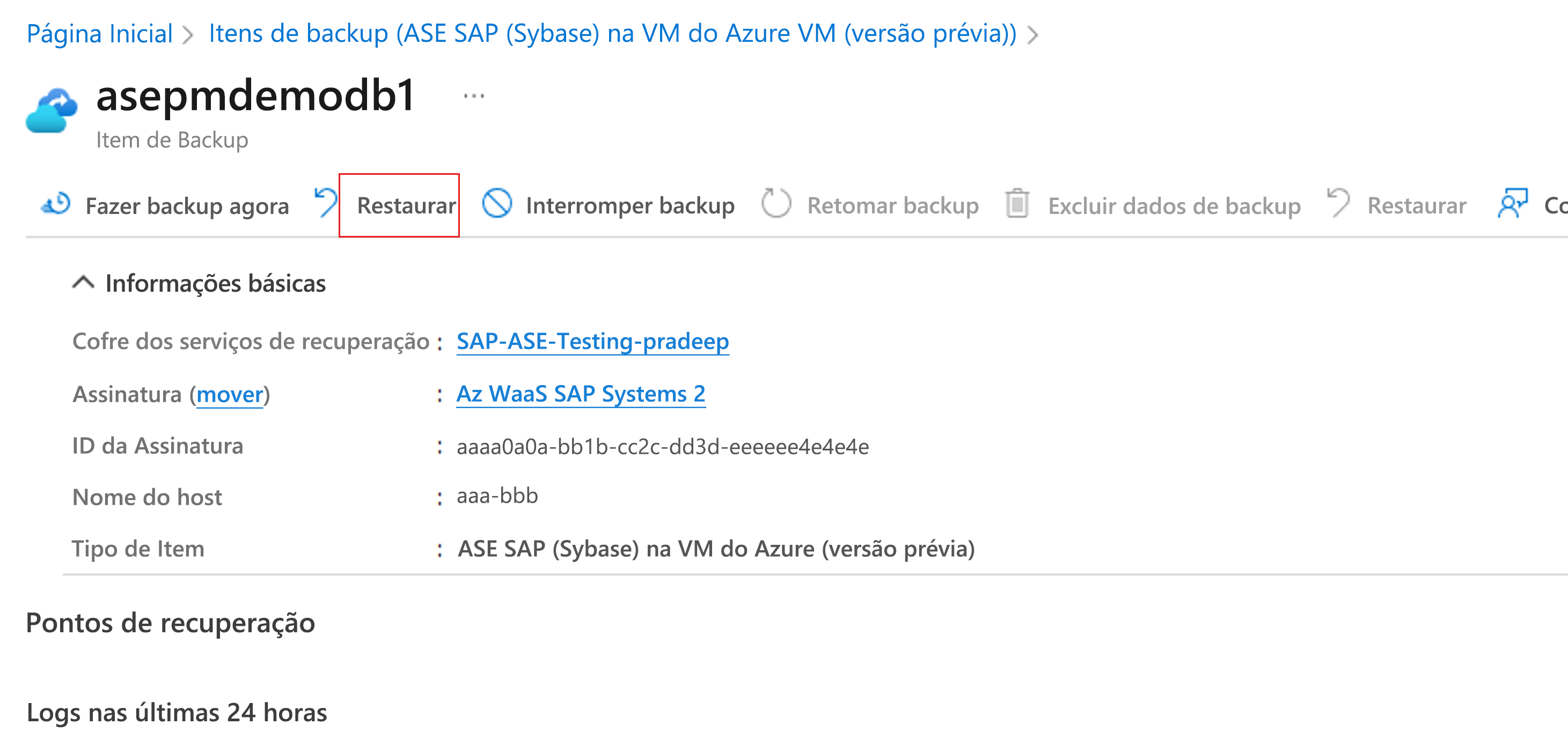 Este artigo descreve como restaurar bancos de dados SAP ASE (em execução em máquinas virtuais do Azure) usando o portal do Azure. A restauração de dados pode ser usada para criar cópias dos dados para cenários de desenvolvimento e teste ou para retornar a um estado anterior.