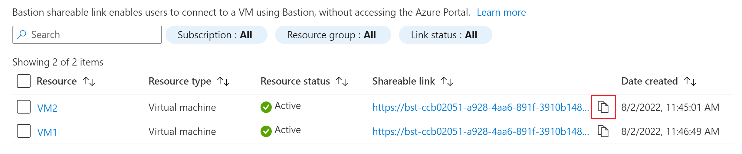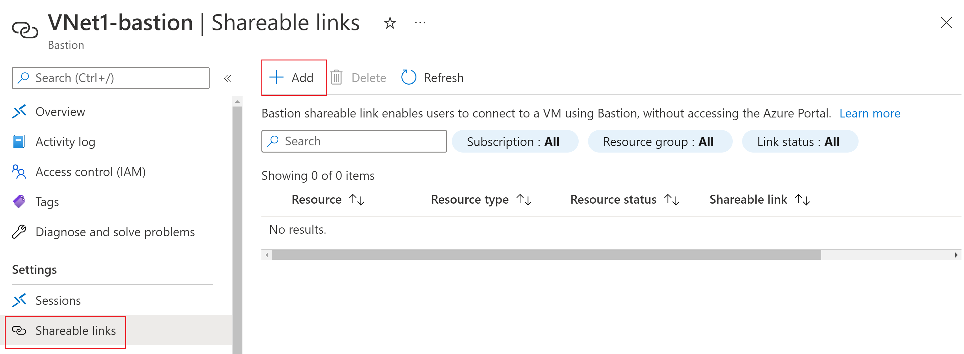 No portal do Azure, acesse o seu recurso do bastion –> links compartilháveis.