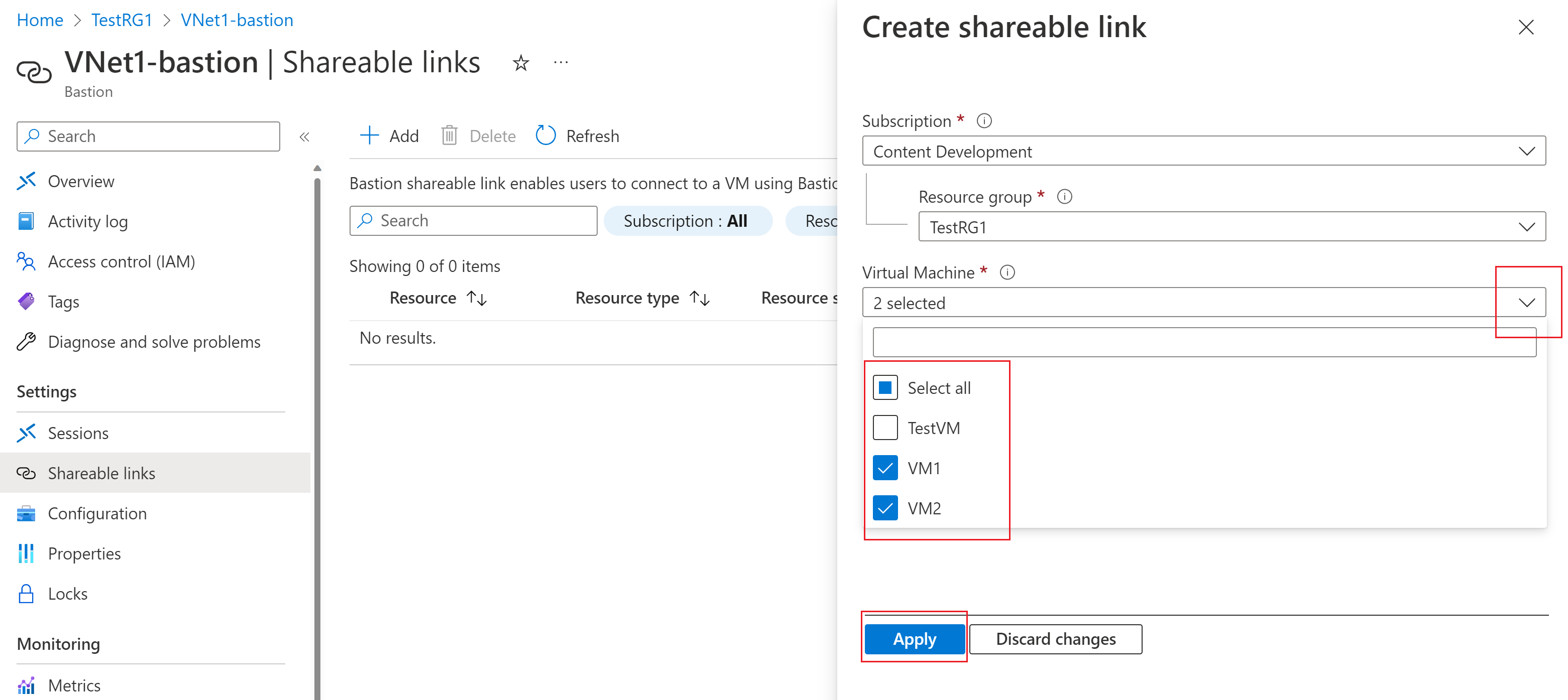 Primeiro você deve habilitar o recurso, antes de criar um link compartilhável para uma VM.