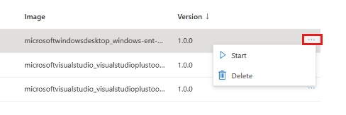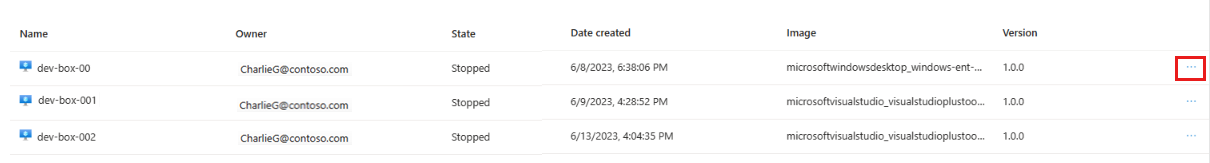 Você pode gerenciar os computadores de desenvolvimento existentes em um pool de computador de desenvolvimento por meio do portal do Azure. Você pode iniciar, parar ou excluir computadores de desenvolvimento.