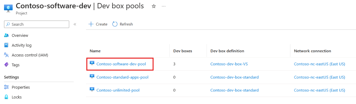 Para gerenciar computadores de desenvolvimento em um pool, você deve acessar o pool por meio do projeto associado. As etapas a seguir mostram como navegar até o pool.