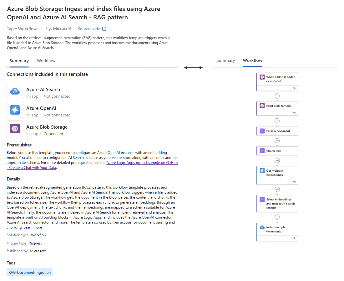 Selecione seu modelo, que abre o painel de visão geral de modelos em que você pode examinar a finalidade do fluxo de trabalho.