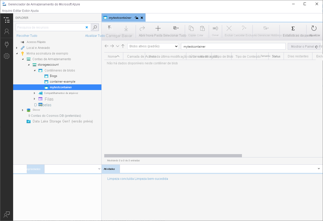 Neste início rápido, você aprenderá como usar o Gerenciador de Armazenamento do Azure para criar um contêiner e um blob. Em seguida, você aprenderá como baixar o blob para seu computador local e como exibir todos os blobs em um contêiner. Você também aprenderá como criar um instantâneo de um blob, gerenciar as políticas de acesso do contêiner e criar uma assinatura de acesso compartilhado.