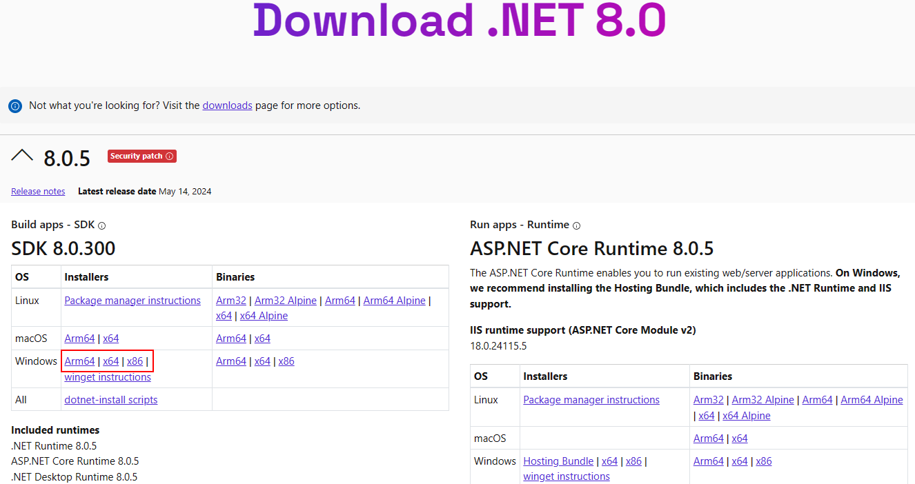 • Microsoft.DotNet.AspNetCore.8 — ASP.NET Core Runtime 8.0