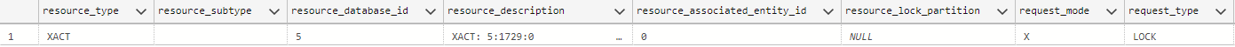 XACTbloqueando recursos. Para obter mais informações, consulteresource_descriptionsys.dm_tran_locks.
