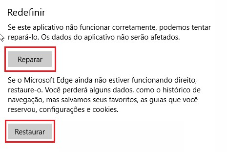 Para Reparar ou redefinir o Microsoft Edge:
