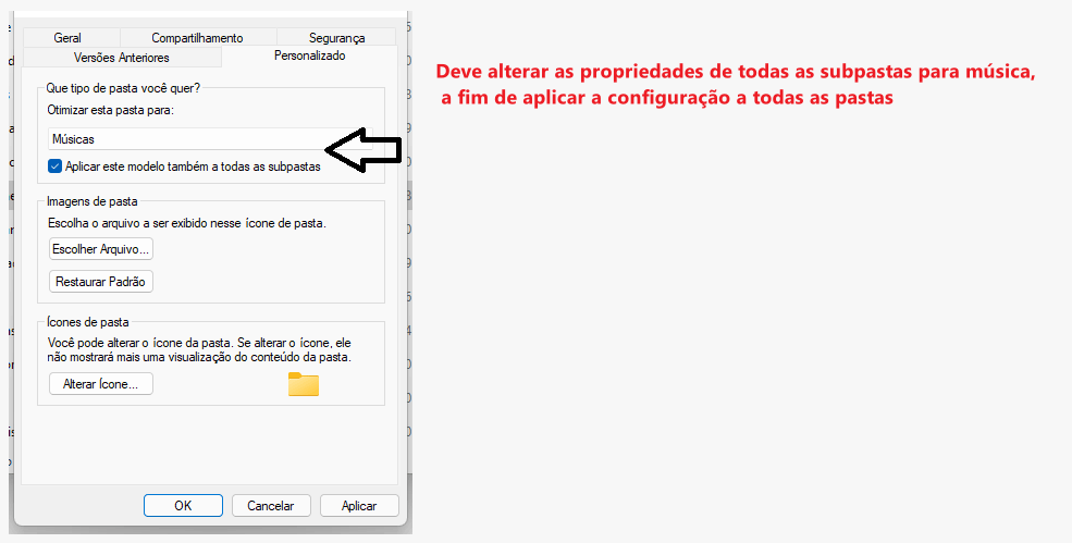 tenho que fazer uma por uma, certo, oras então para servir a opção "aplicar também esse modelo a todas as subpastas" mais uma coisa sem sentido do Windows. E o detalhe como falei já fiz isso uma a uma e doo nada elas aparecem com outra configuração. Mais, obrigado por ajuda, já desisti de tentar arrumar, só não entendo de adiantado que um trabalho que deixou o Windows 11 bonito com um visual legal que deixa os arquivos no Explorer com um visual bem melhor do que antes, porem não se consegue personalizar o próprio Windows não coopera, seria melhor investir em investir nos bugs e coisas sem sentido como o caso acima. Obrigado por ajuda.