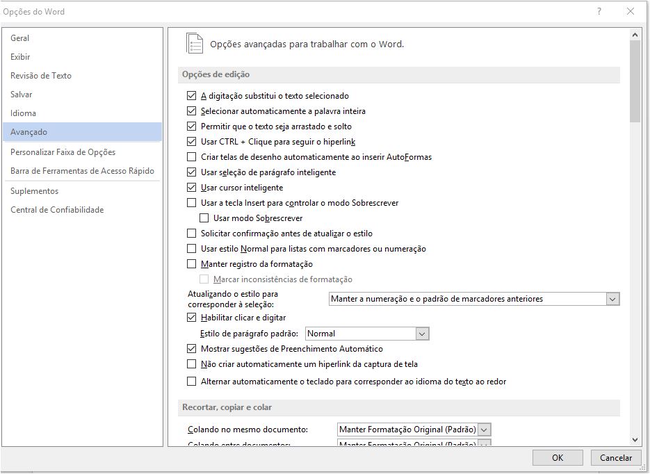 clique em Opções e clique em Avançado: