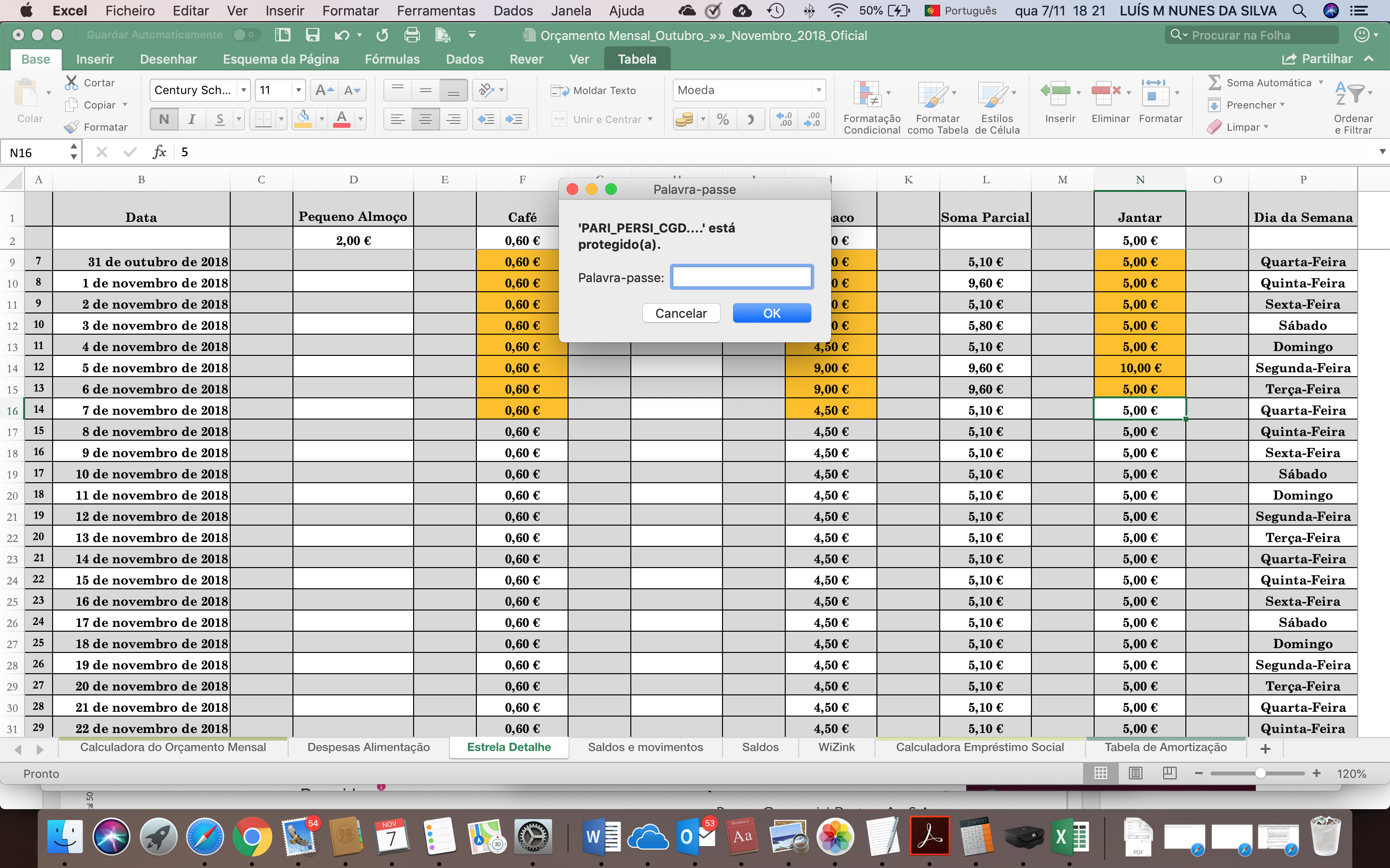 4. Com o arquivo aberto, clique na guia Revisão e clique em Proteger Planilha, defina a senha e as permissões e clique em OK, clique em Proteger Pasta de Trabalho e defina a senha desejada clique em OK;