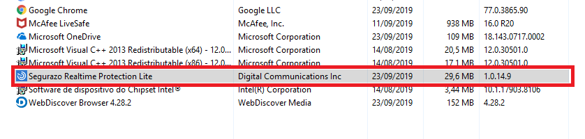 Se ainda apresentar da mesma forma, verifique se programa Segurazo ou SAntivirus está instalado em seu dispositivo.