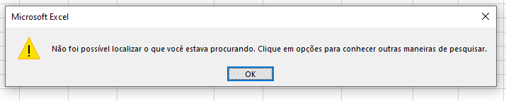 O que esta acontecendo comigo é que mesmo utilizando a função do Ctrl+L para buscar uma letra em um excel em branco ele não esta apararecendo o texto informado.