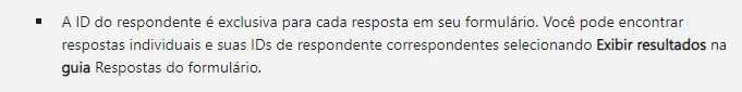Se o entendimento acima estiver correto, de acordo com o teste de pesquisa do nosso lado, tememos que seja um comportamento por design. Geralmente,o ID do respondente é exclusivo para cada resposta em seu formulário. Você pode encontrar respostas individuais e seus IDs de respondente correspondentes selecionando Exibir resultados na guia Respostas do formulário. Ele não será alterado com a ação de exclusão.