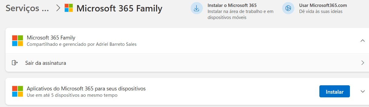 Olá Adriel Barreto Sales. Obrigado pela sua resposta. Há algum tempo, os usuários realmente relataram problemas semelhantes. Parece que, por algum motivo, esses usuários, incluindo você, podem estar perdendo opções nas páginas de suas contas da Microsoft e certas ações não podem ser executadas sem problemas. Este pode ser um problema temporário, mas ainda não encontramos uma explicação oficial para isso. Coletamos esse feedback e estamos investigando. Além disso, em relação à sua assinatura, você pode obter mais assistência entrando em contato com o suporte online: