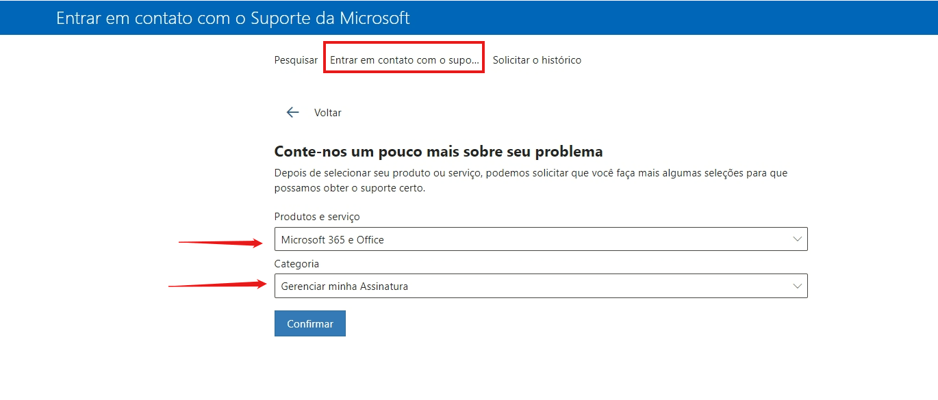 - Vá para a guia Produtos e serviços e escolha a categoria Microsoft 365 e Office
