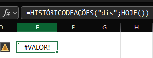 Lamentamos a situação frustrante que você está enfrentando. O HISTÓRICODEAÇÕES/STOCKHISTORY não é “tempo real”, ele depende de um feed que costuma atualizar só após o fechamento do mercado e pode ficar atrasado, então em certos horários o Excel entende o “HOJE()” como sem negociação mesmo em dia útil.