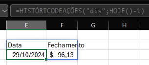 Em outras palavras: HOJE() pode falhar para o histórico diário, enquanto HOJE()-1 funciona porque já existe fechamento confirmado para o dia anterior. Isso bate com relatos idênticos (usar data de ontem retornando o fechamento mais recente).