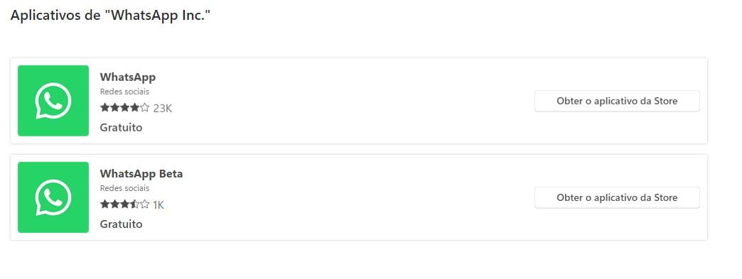 Os únicos Apps disponíveis na Windows Store é o WhatsApp e o WhatsApp Beta, fora isso não há outros.