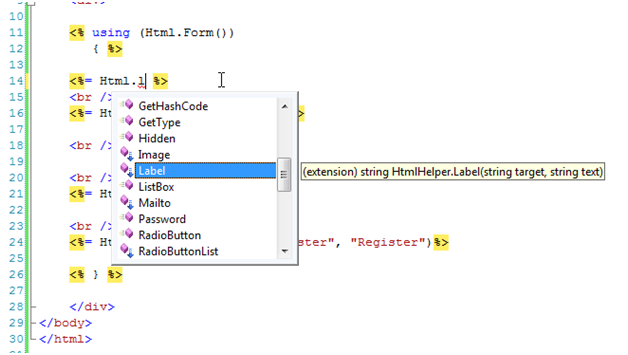 Figura 02: Usando o método de extensão Html.Label() (Clique para exibir a imagem em tamanho real)