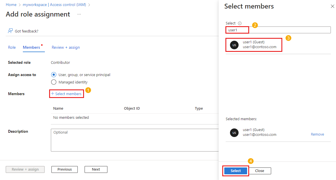 Selecione Selecione membros, localize e selecione os usuários, grupos ou entidades de serviço.
